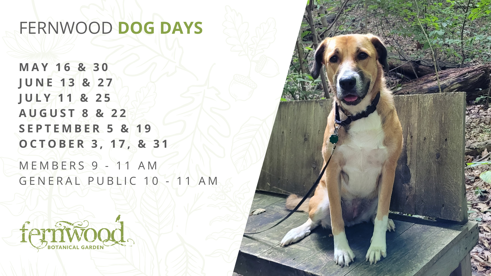 Fernwood Members: Early entry begins at 9 am for members only. Dogs and their owners get free admission with an active membership.